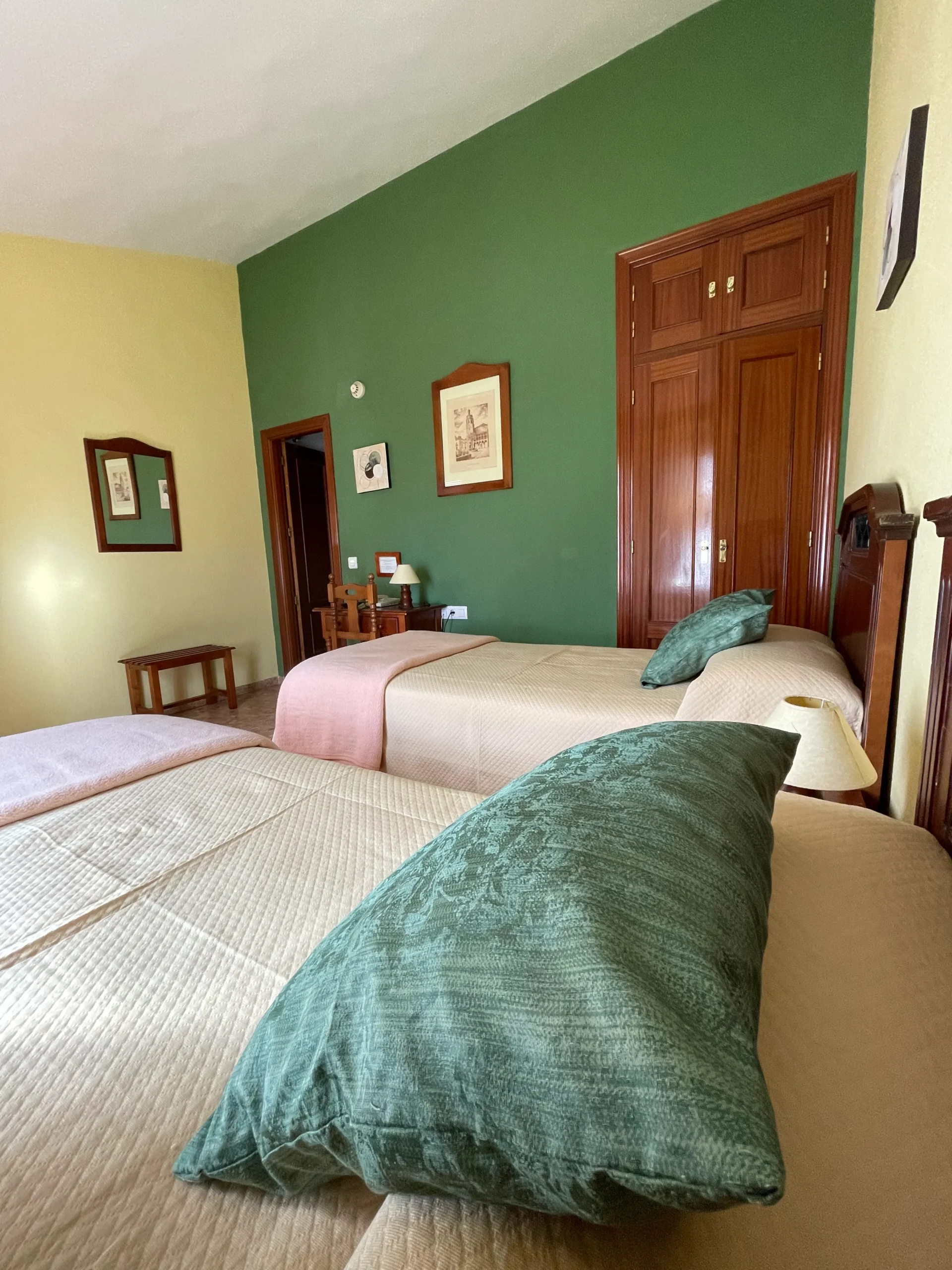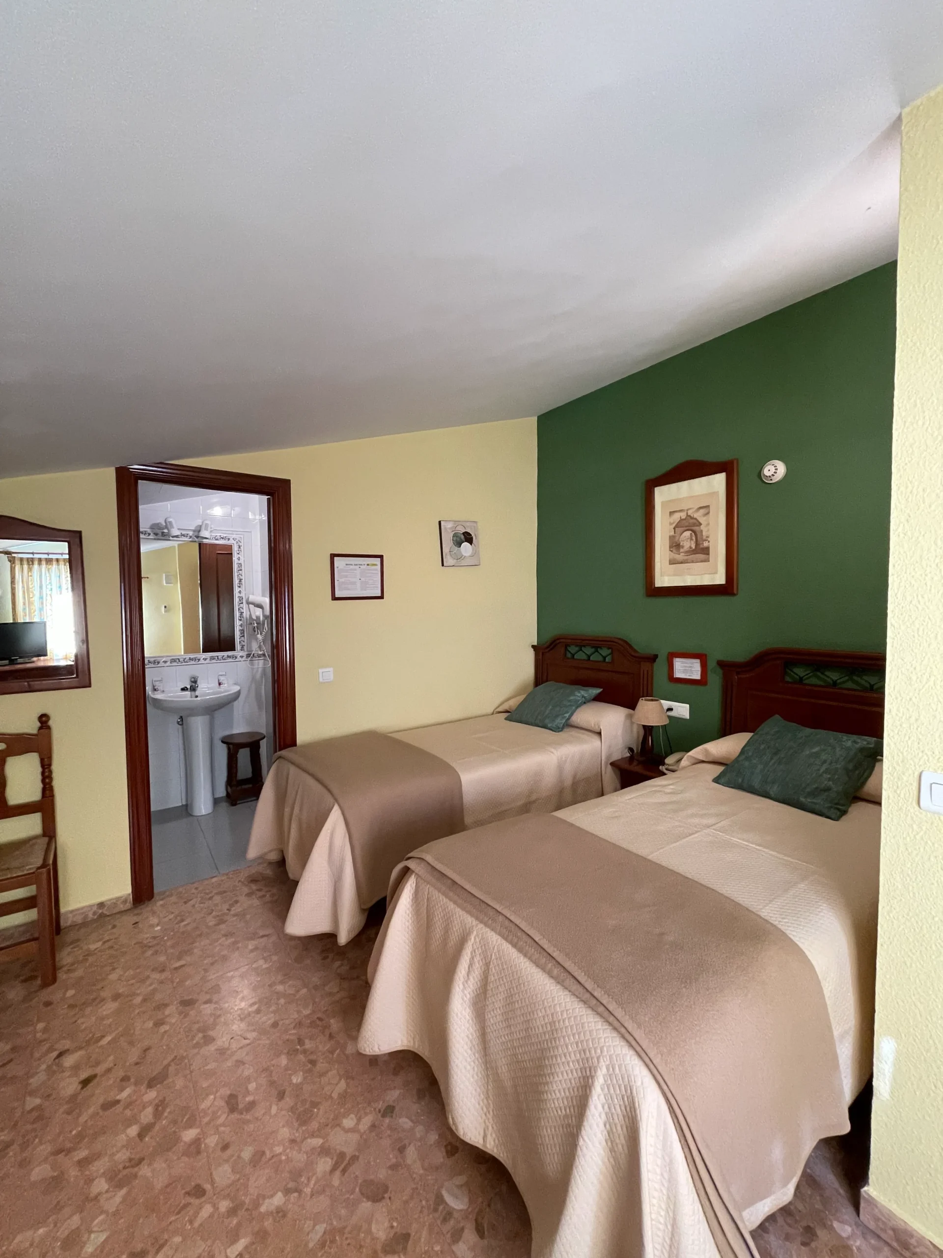 Disfruta de una estancia relajante en nuestra amplia habitación doble, diseñada pensando en tu comodidad. Este espacio versátil cuenta con dos camas individuales, ofreciendo el equilibrio perfecto para compañeros de viaje o parejas que prefieren independencia al descansar. Si lo deseas, también disponemos de configuración con cama de matrimonio (bajo petición).